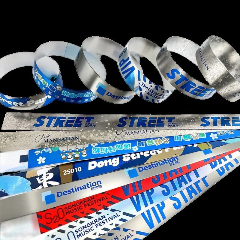 2. Conciertos y festivales de música: Estas pulseras son perfectas para su uso como entradas o pases VIP en conciertos y festivales de música.Permite la personalización para que coincida con el tema del evento o la marca.
